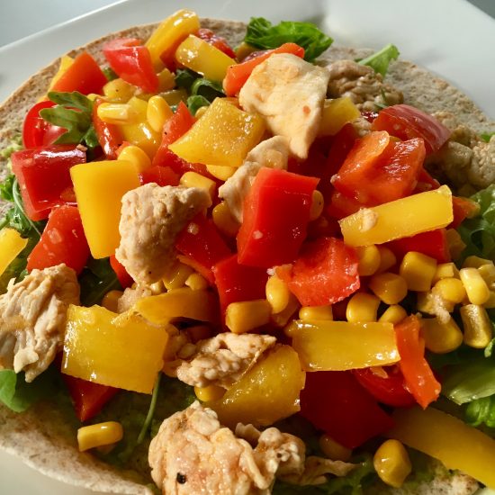 Ingrediënten (voor 2 personen): • klein blikje maïs • 1 gele en 1 rode paprika, in s